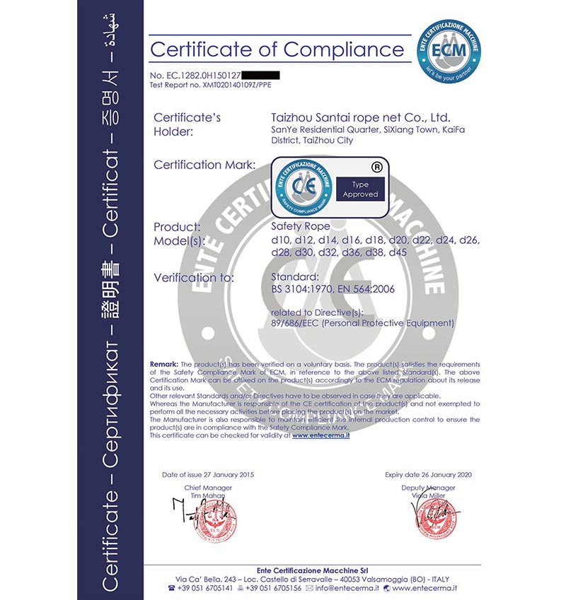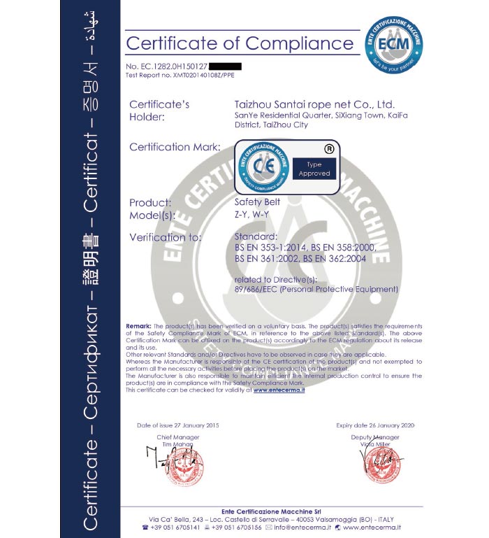泰州市三泰健康科技有限公司(原 泰州市三泰繩網(wǎng)有限公司),本公司成立于1988年12月22日,至今近30年的生產(chǎn)歷程。多年來(lái)的生產(chǎn)經(jīng)驗(yàn),加之我們不斷的創(chuàng)新,已經(jīng)建設(shè)成為集研制、開發(fā)、生產(chǎn)、銷售為一體的龍頭企業(yè)。公司生產(chǎn)線由捻線車間、制繩車間、織網(wǎng)車間、織帶車間、織(絞)繩車間、安全網(wǎng)組裝車間、安全帶組裝車間、檢驗(yàn)室等組成。企業(yè)現(xiàn)有職工155人,企業(yè)管理人員6名,市場(chǎng)研發(fā)人員8名,專業(yè)質(zhì)檢人員2名,......